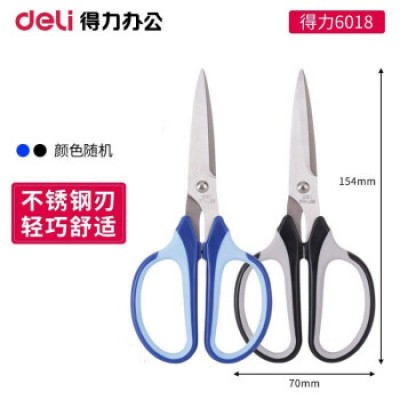 得力(deli) 剪刀家用裁缝剪厨房剪办公小剪刀不锈钢大剪子剪刀工业 【生锈包退】加大手柄款/颜色随机1把