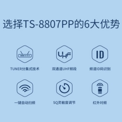 首页 > 得胜( TAKSTAR)TS-8807PP分集式无线麦克风 双通道UHF频段红外对频技术会议培训教学通用 黑色